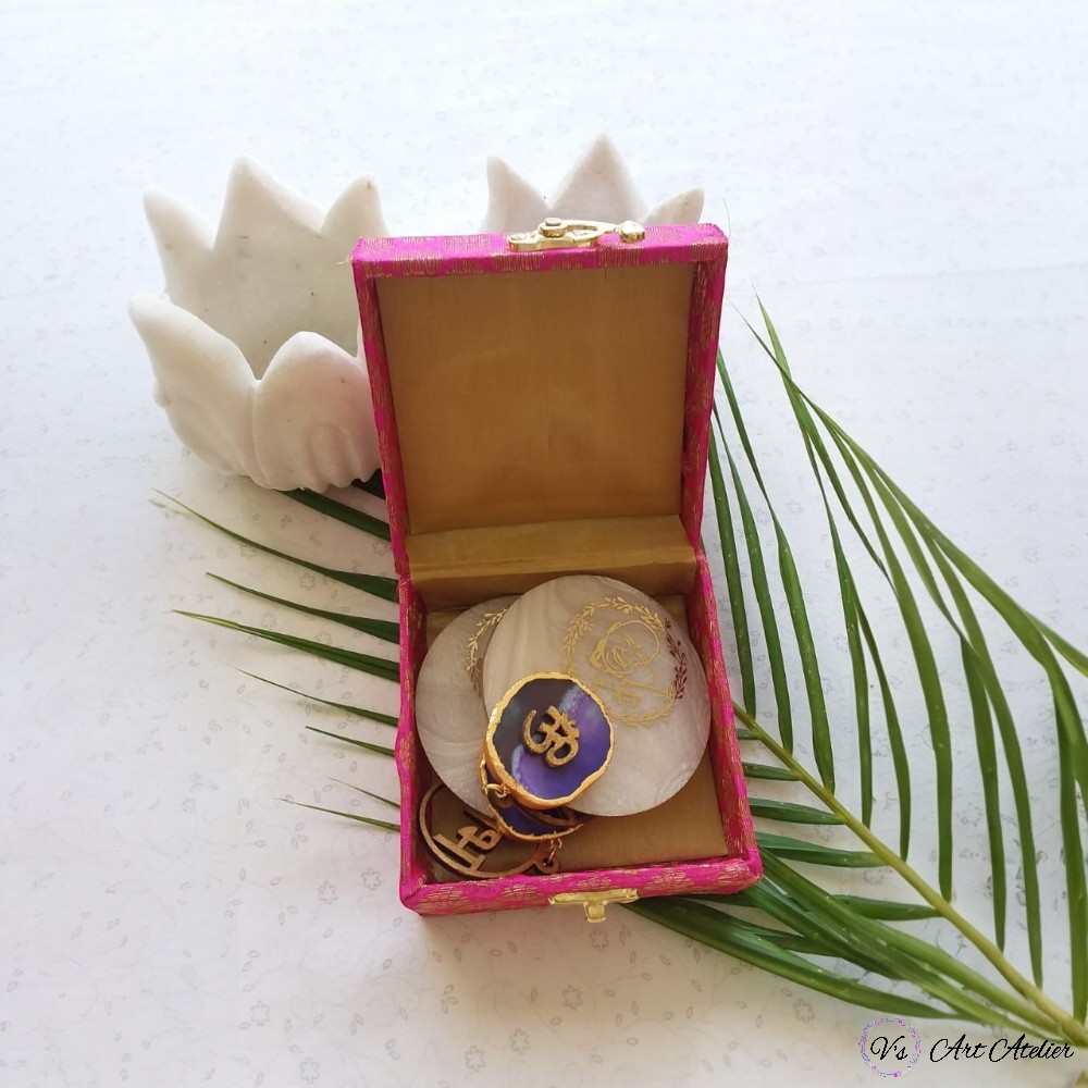- Each pack features a decorative box and contains an agate Shubh Labh on marble.