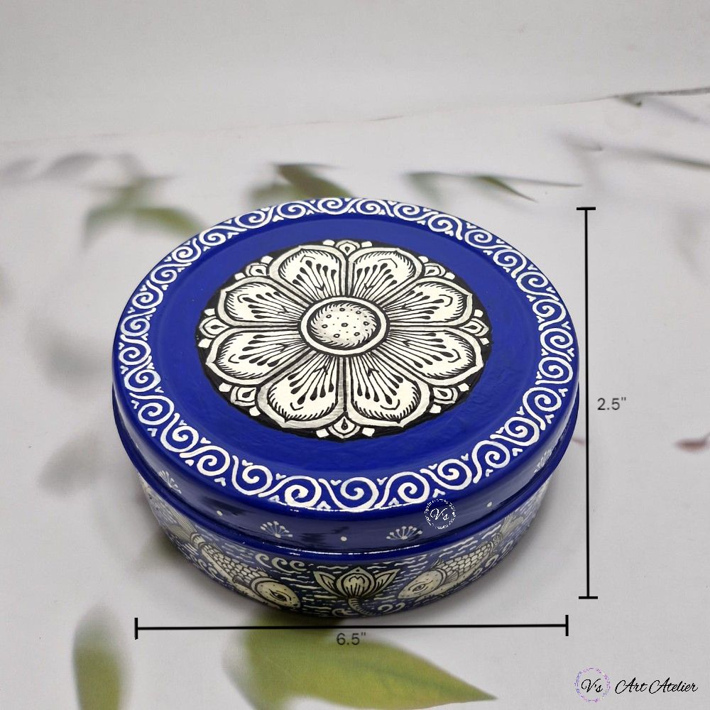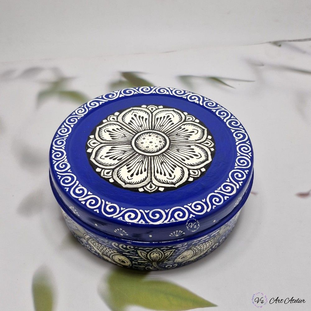 Hand-painted Pattachitra Blue Snacks Box (S)
