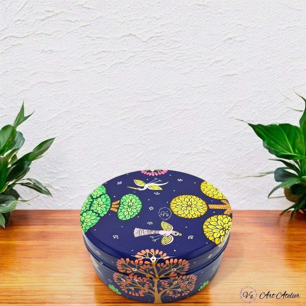 Hand Painted Pattachitra Nature Blue Snacks Box (S)