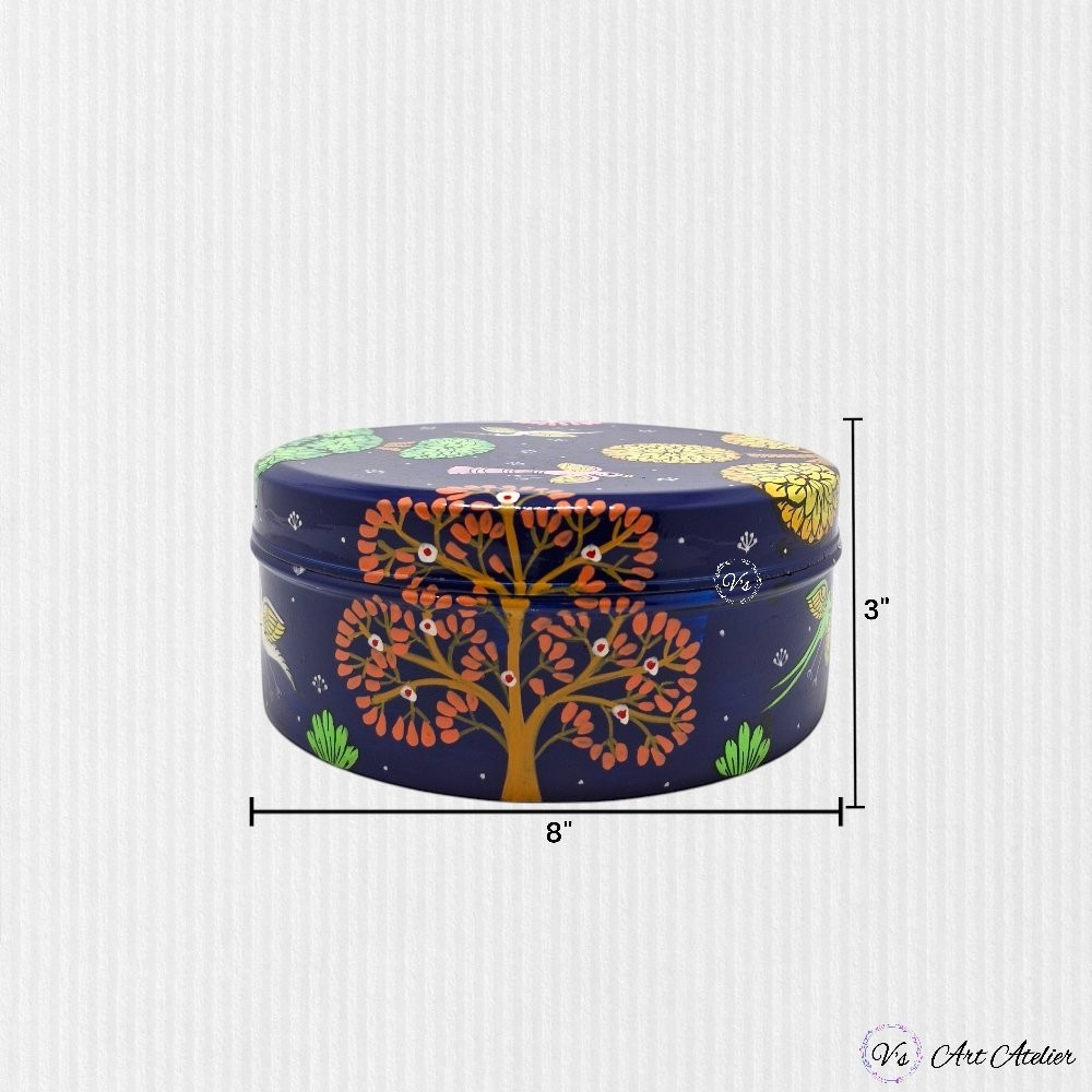 Hand Painted Pattachitra Nature Blue Snacks Box (L)