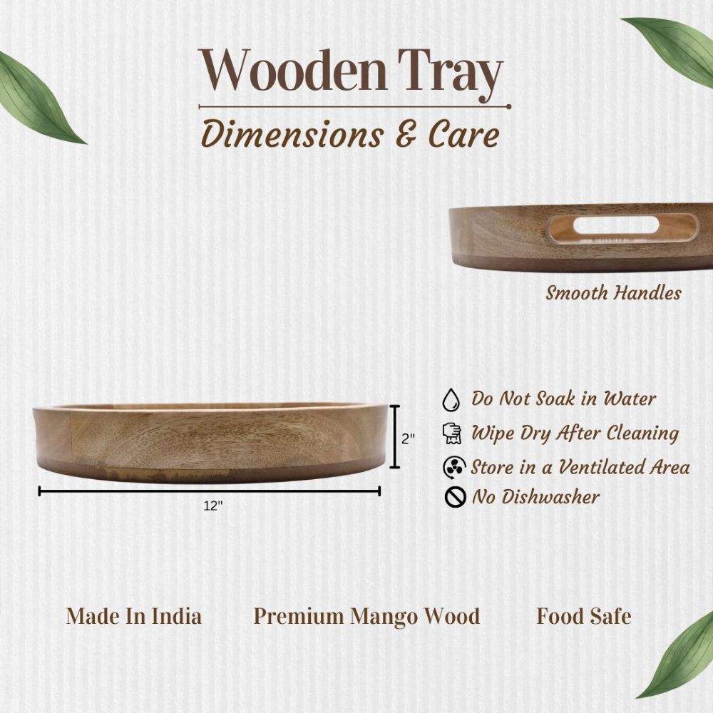 - Crafted from high-quality mango wood, these trays feature a smooth finish and unique wood grain patterns, making each piece one of a kind.