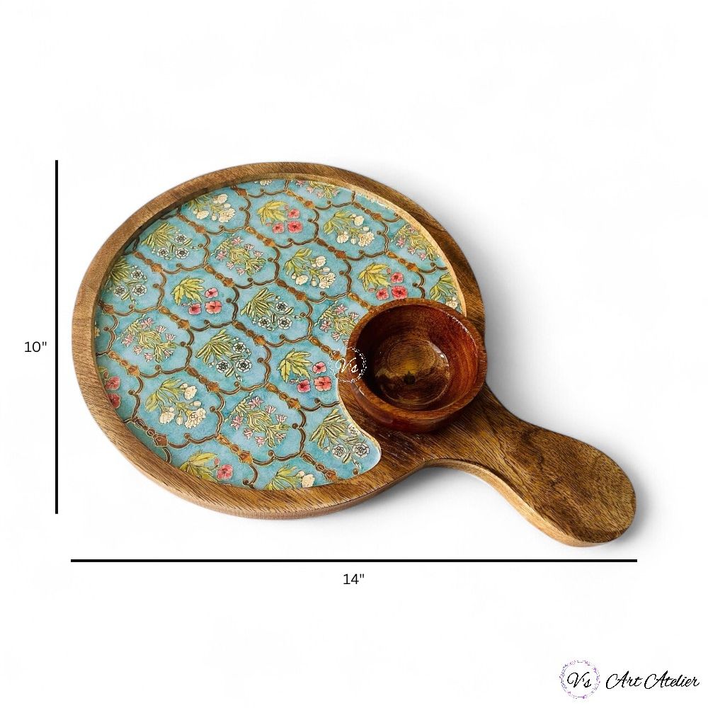 - Elegant mango wood platter with dip bowl – perfect for stylish serving.